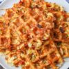 Disse velsmagende vafler er perfekte til en sjov middag og kan toppes med dine yndlings taco-tilbehør, hvilket gør dem til en publikumsfavorit for både børn og voksne.